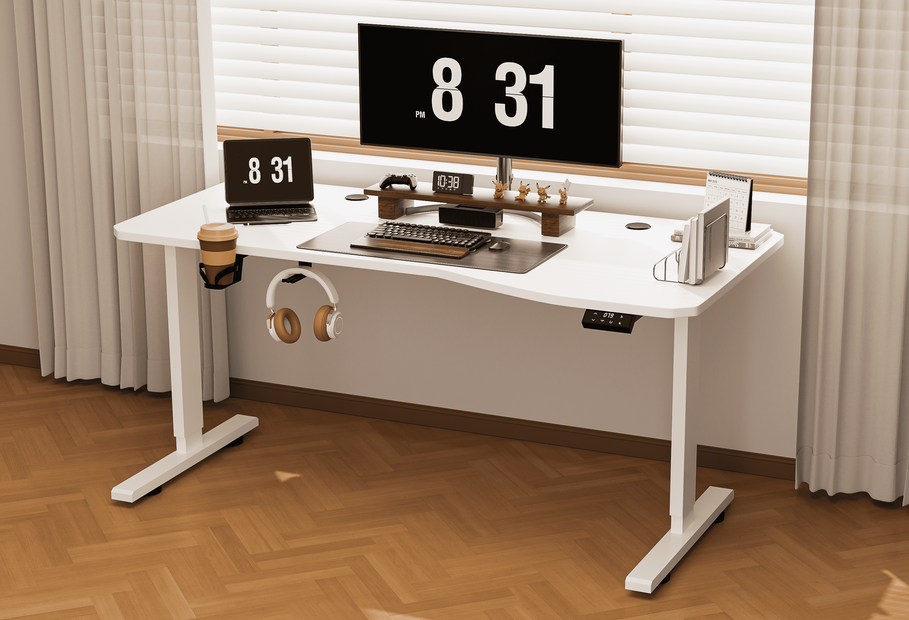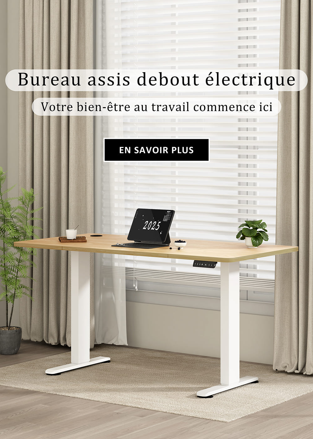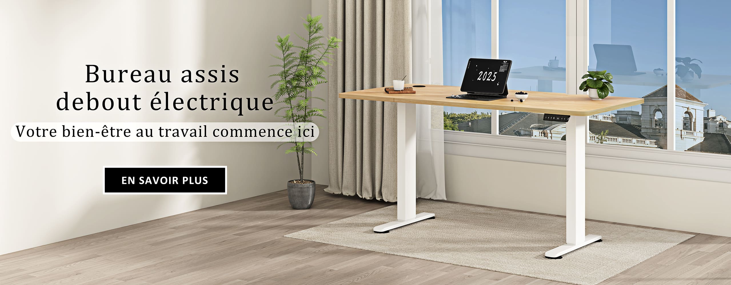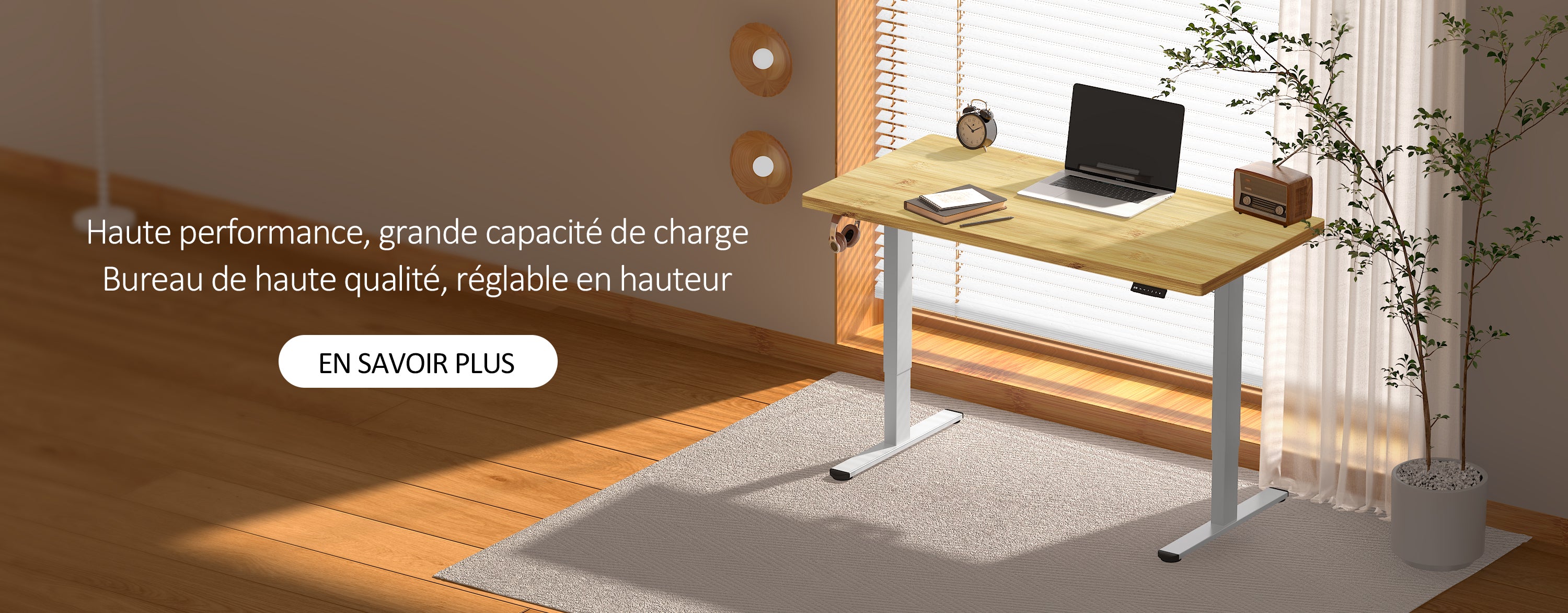 Bureau haut de gamme à hauteur réglable électriquement avec plateaux fabriqués en une seule pièce